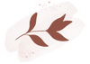 Illustration of a brown leaf on a pink watercolor background.